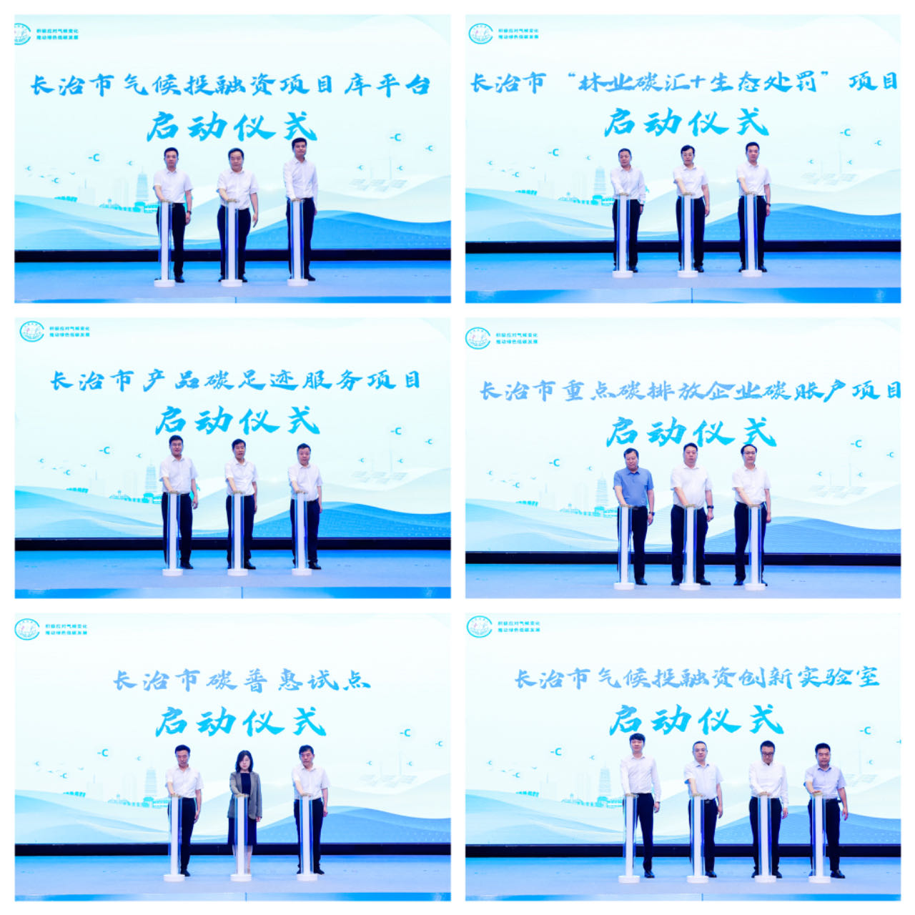 在長(chang)治(zhi)市(shi)氣候(hou)投融(rong)資(zi)項目(mu)啟動儀式上,長(chang)治(zhi)市(shi)氣候(hou)投融(rong)資(zi)項目(mu)庫平臺(tai)、長(chang)治(zhi)市(shi)“林業(ye)碳(tan)匯+生態(tai)處罰”項目(mu)、長(chang)治(zhi)市(shi)產(chan)品碳(tan)足跡服務項目(mu)、長(chang)治(zhi)市(shi)重(zhong)點碳(tan)排放企(qi)業(ye)碳(tan)賬(zhang)戶項目(mu)、長(chang)治(zhi)市(shi)碳(tan)普惠試點、長(chang)治(zhi)市(shi)氣候(hou)投融(rong)資(zi)創新實驗室6個項目(mu)正式啟動;